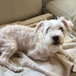 Color: White with orange/brown ears spots on her back a